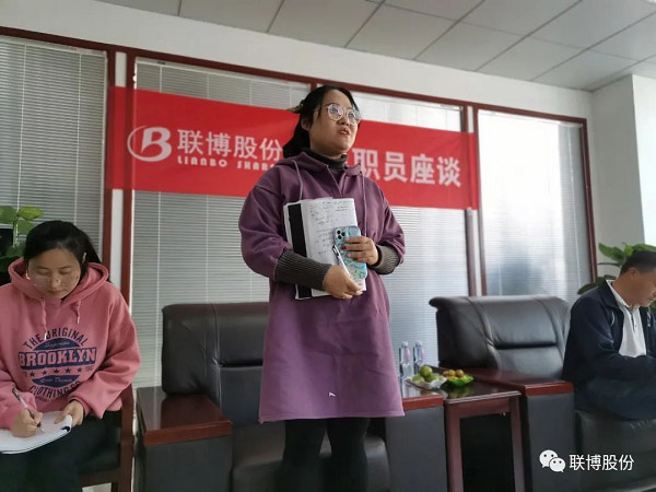 最后,肖總做總結(jié)發(fā)言,他表示本次座談為關(guān)愛新員工開了個好頭,我們要把關(guān)愛員工做到實處,并號召老員工要發(fā)揚“傳幫帶”精神,與新員工齊肩并進,共同奮斗,共同進步,為聯(lián)博的快速發(fā)展作出更大的貢獻,攜手鑄就卓越平臺,共同譜寫美好明天!